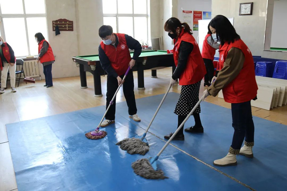 此次活動(dòng)圍繞清掃社區(qū)居民活動(dòng)室展開。下午1點(diǎn)30分,航空集團(tuán)25名黨員及入黨積極分子準(zhǔn)時(shí)到達(dá)美地社區(qū),大家迅速穿上醒目的志愿者紅馬甲,分工合作起來?;顒?dòng)現(xiàn)場(chǎng),志愿者們積極投入到清掃社區(qū)活動(dòng)室地面、清除衛(wèi)生死角、擦拭公共展板等工作中。此外黨員志愿者們?cè)谏鐓^(qū)工作人員的帶領(lǐng)下,搬桌子、掛條幅、擺凳子,圓滿完成美地社區(qū)即將召開黨員大會(huì)的前期布置工作。
