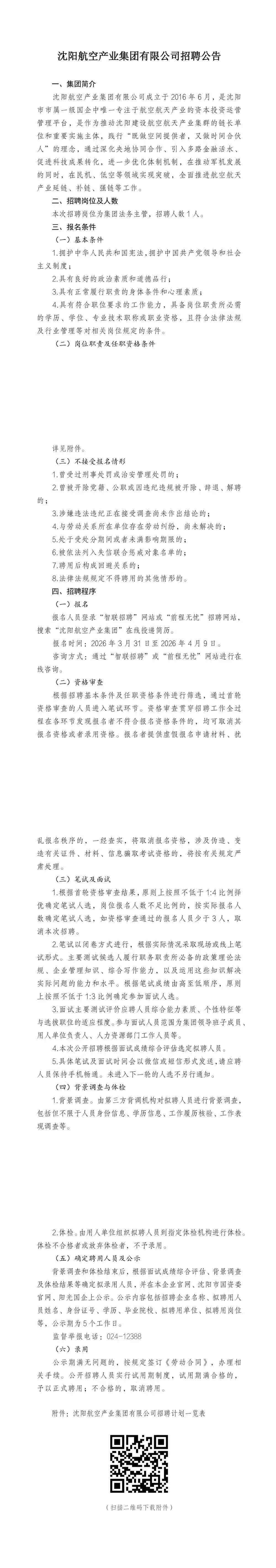 沈陽航空產(chǎn)業(yè)集團有限公司招聘公告
