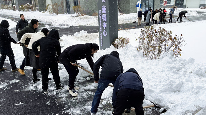 集團(tuán)黨委積極響應(yīng)市委關(guān)于《讓黨旗在應(yīng)對(duì)冰雪天氣工作第一線高高飄揚(yáng)》的倡議,自11月7日起連續(xù)兩天組織黨員,并帶動(dòng)團(tuán)員、廣大員工在航空產(chǎn)業(yè)園區(qū)開(kāi)展積雪清掃行動(dòng),充分發(fā)揮黨員先鋒模范作用,以主力軍、突擊隊(duì)的實(shí)際行動(dòng)踐行共產(chǎn)黨員的光榮使命。